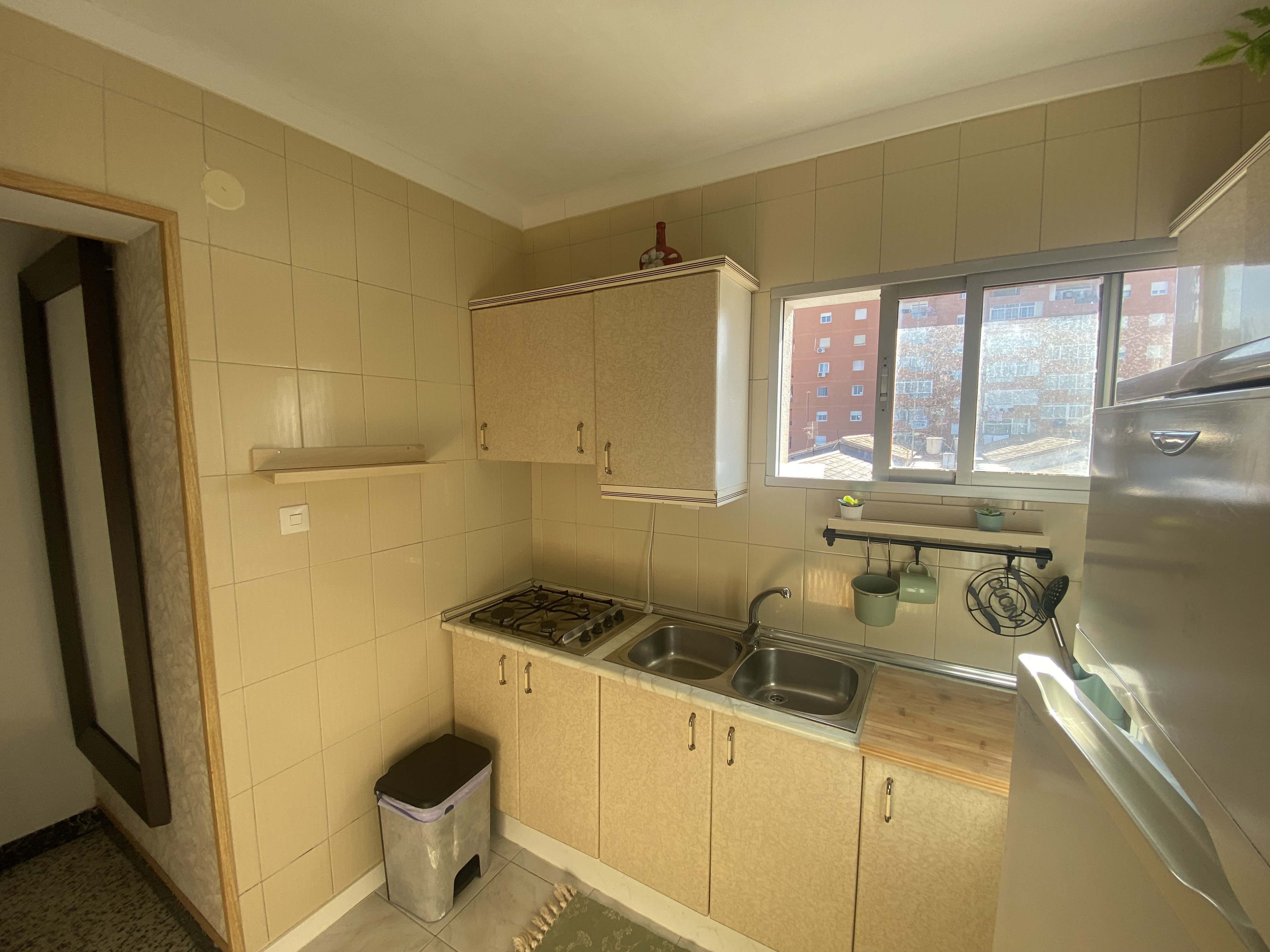Al entrar, te recibe un salón lleno de luz natural, decorado con un gusto exquisito que combina detalles cálidos y modernos. Este espacio se conecta con una terraza privada, perfecta para relajarte al aire libre o crear un pequeño rincón verde. La cocina, funcional y bien distribuida, te invita a disfrutar de cada momento en ella, ya sea cocinando o compartiendo.
